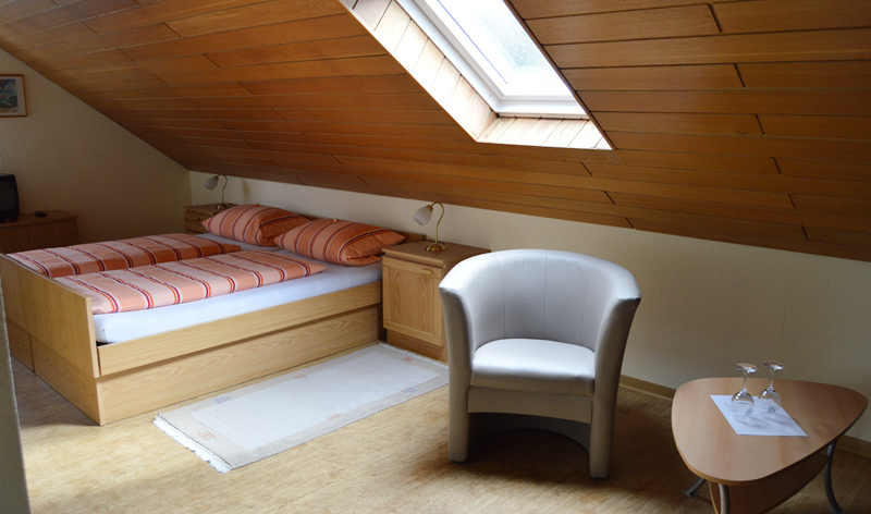 - liegen unsere gemütlichen DG-Doppelzimmer für Gäste,