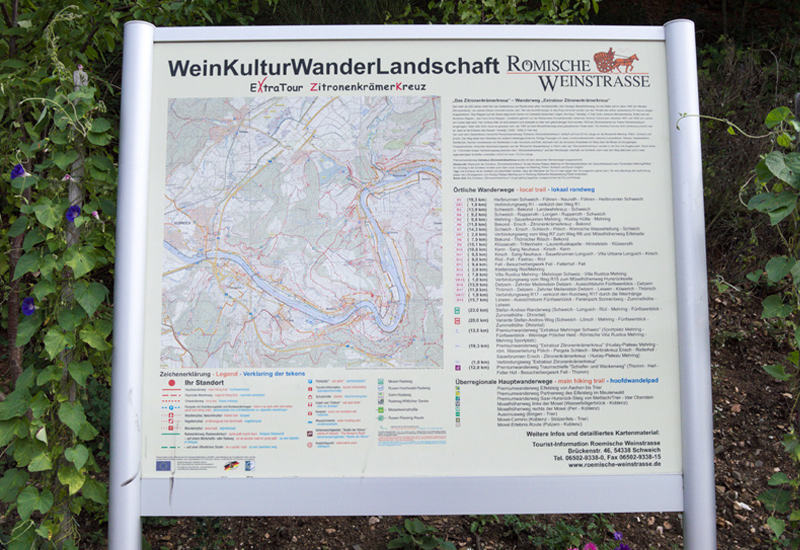 Eine große Übersichtstafel gibt Auskunft über weitere Möglichkeiten kleiner oder großer Wanderungen durch die WeinKulturWanderLandschaft Römische Weinstraße.
