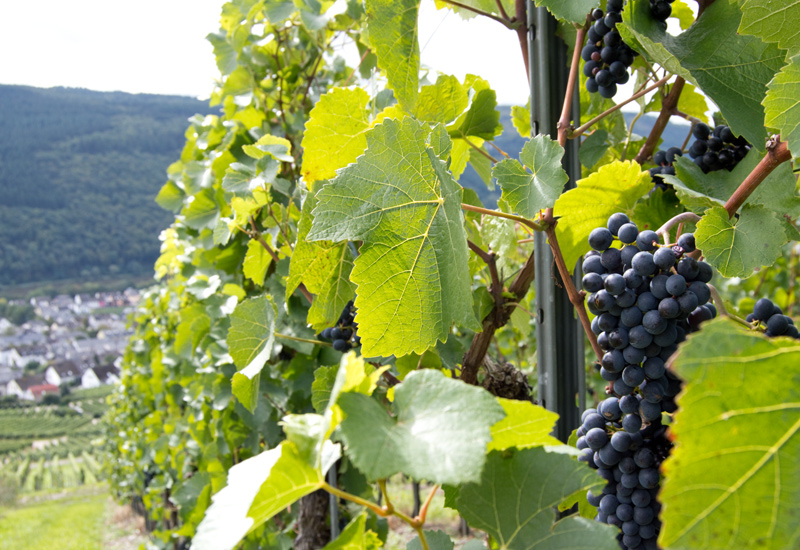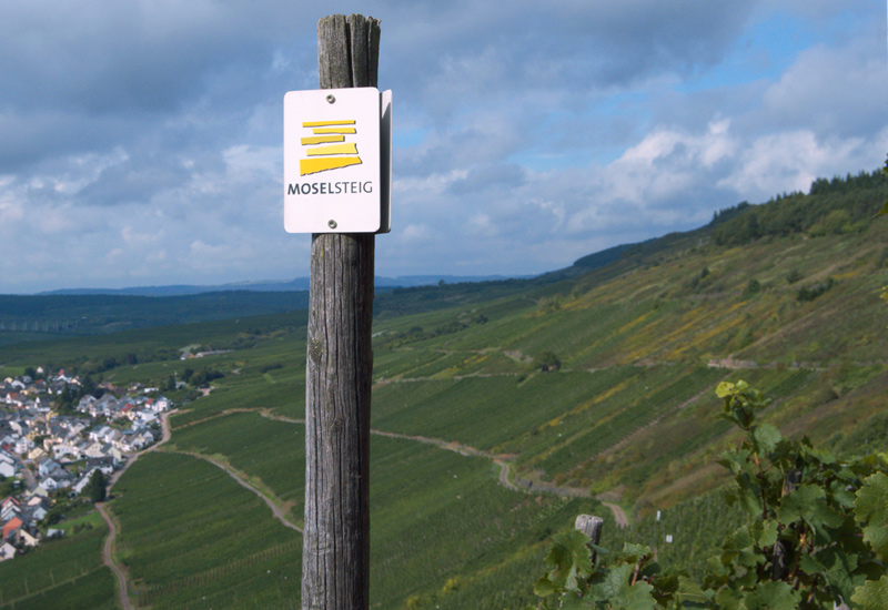Der aufmerksame Wanderer wird neben der ständig präsenten Rieslingrebe auch rote Weinsorten entdecken.