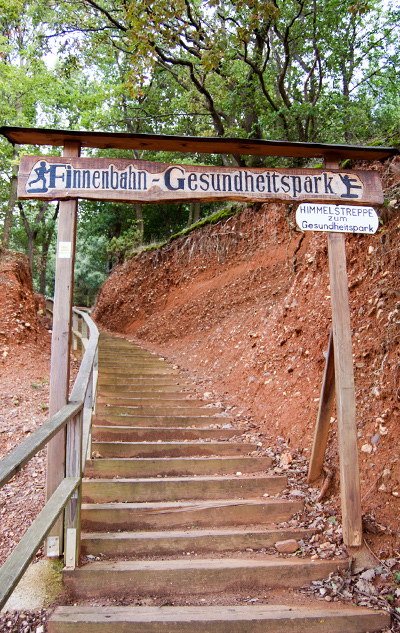 In direkter Umgebung gelangen Sie oberhalb des Huxlay-Plateaus über eine Treppe zum Finnenbahn-Gesundheitspark