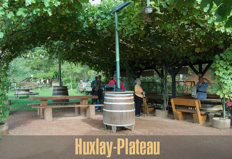 200 m weiter oben am Huxlay-Plateau. Hier befindet sich der zentrale Punkt des Weinbaulehrpfades mit einer kleinen